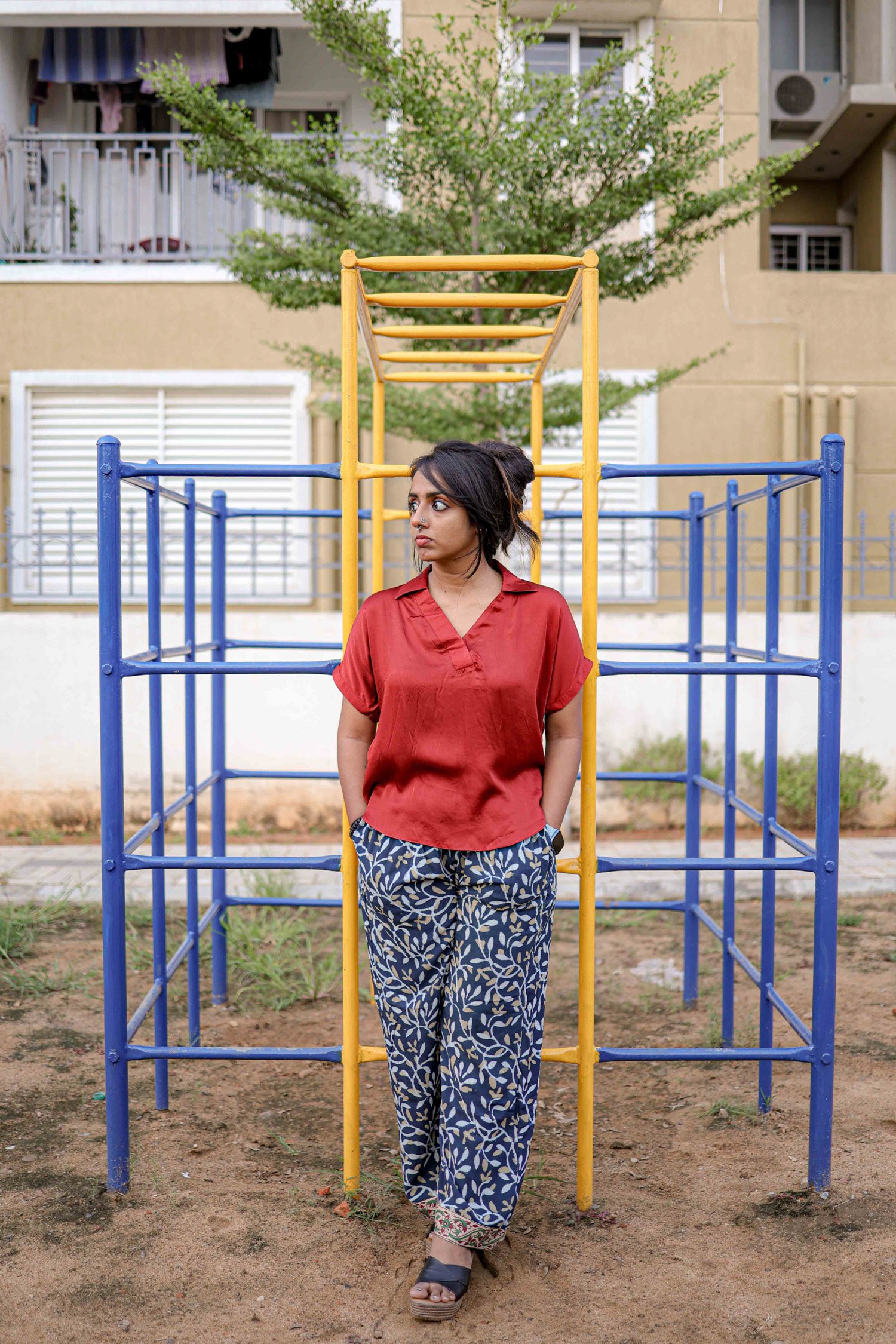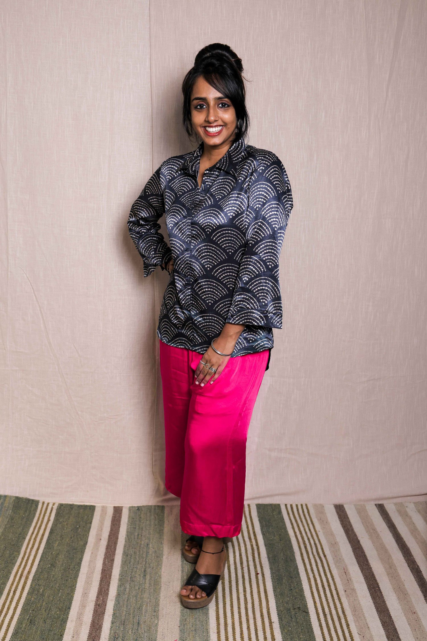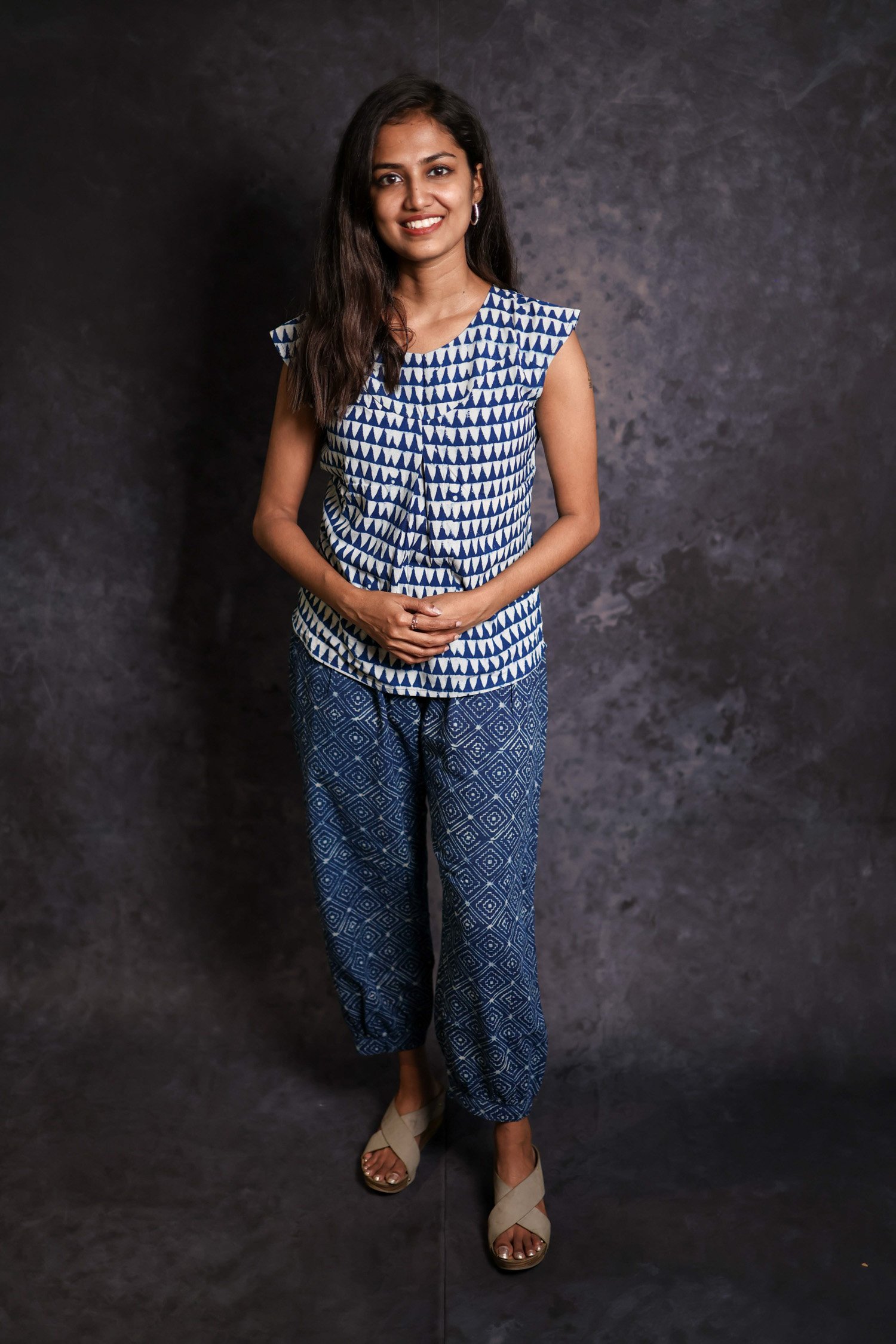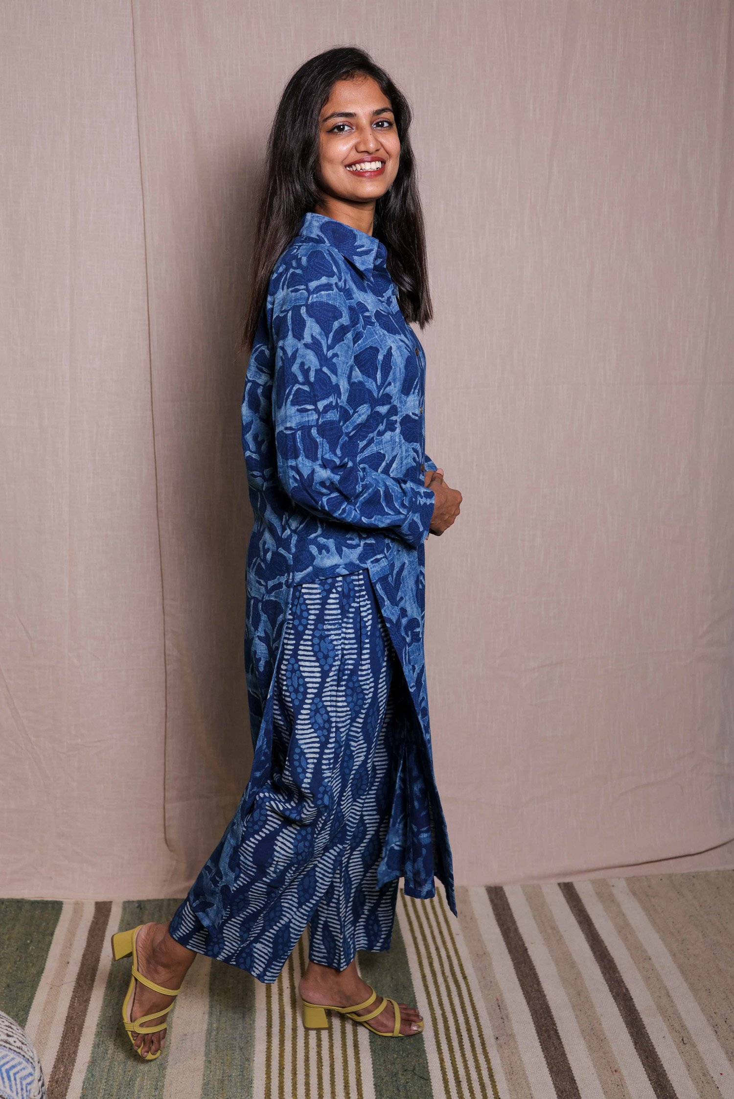 Handcrafted Indigo printed Pant & Solid Silk Top Co-ord