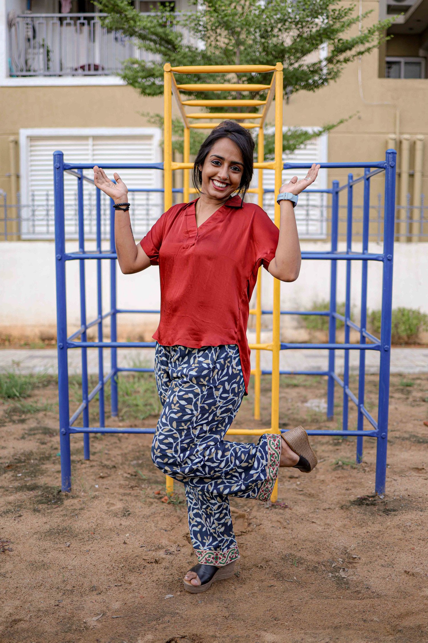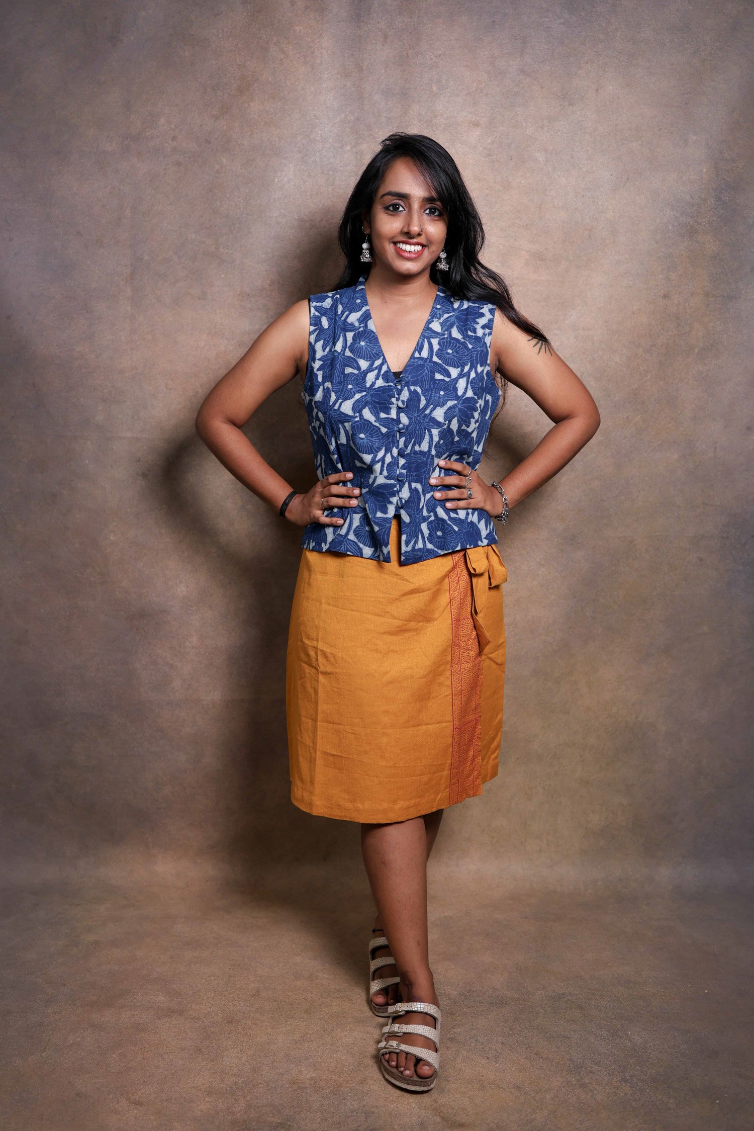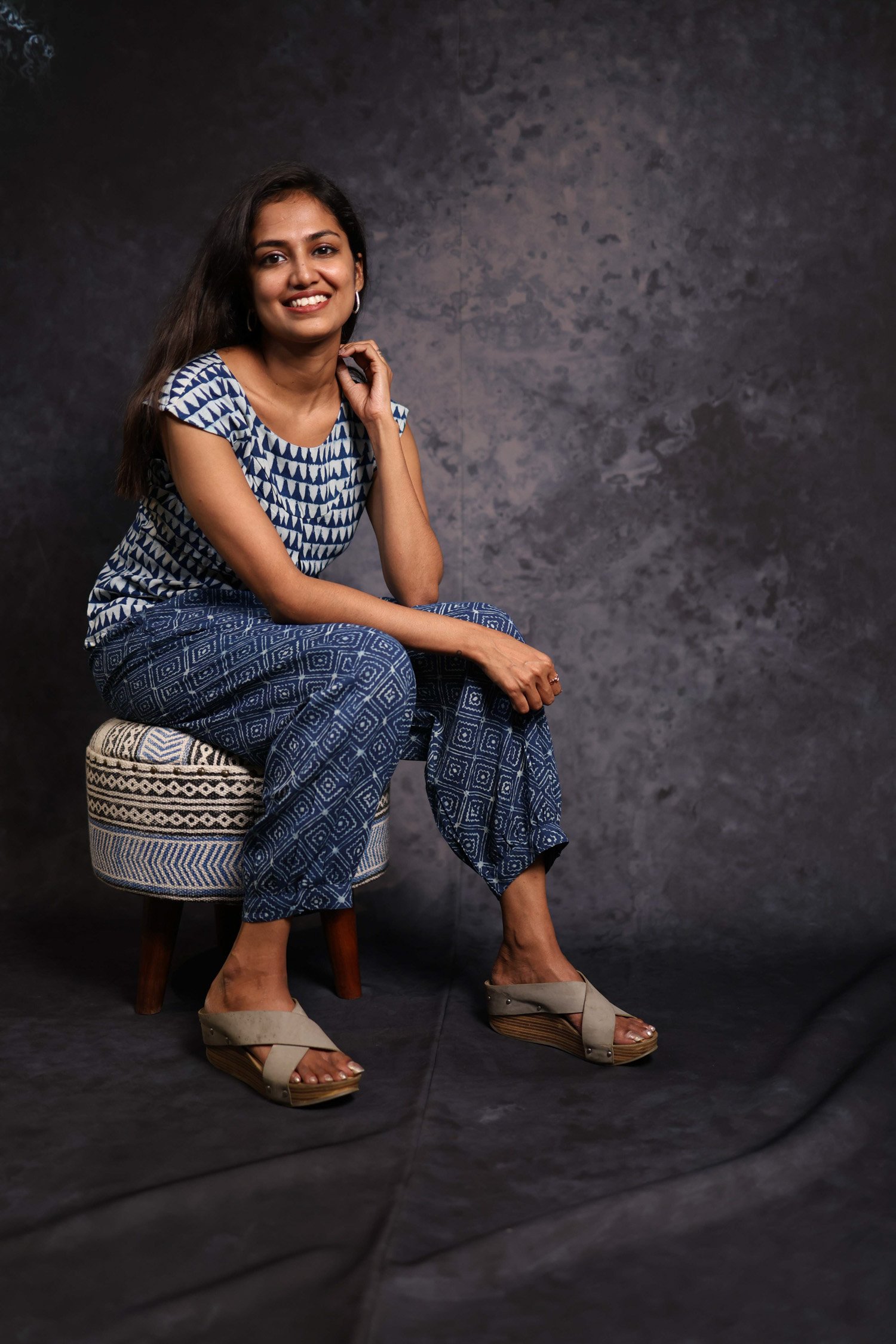 Handcrafted Indigo printed Pant & Solid Silk Top Co-ord