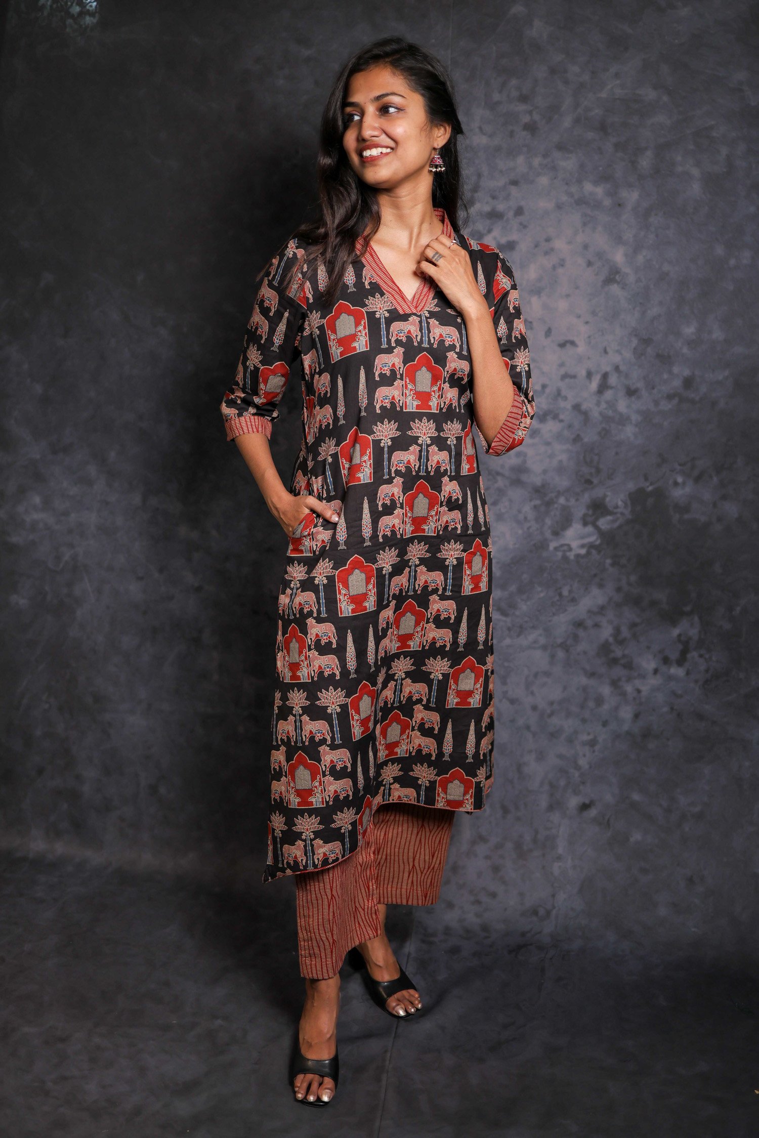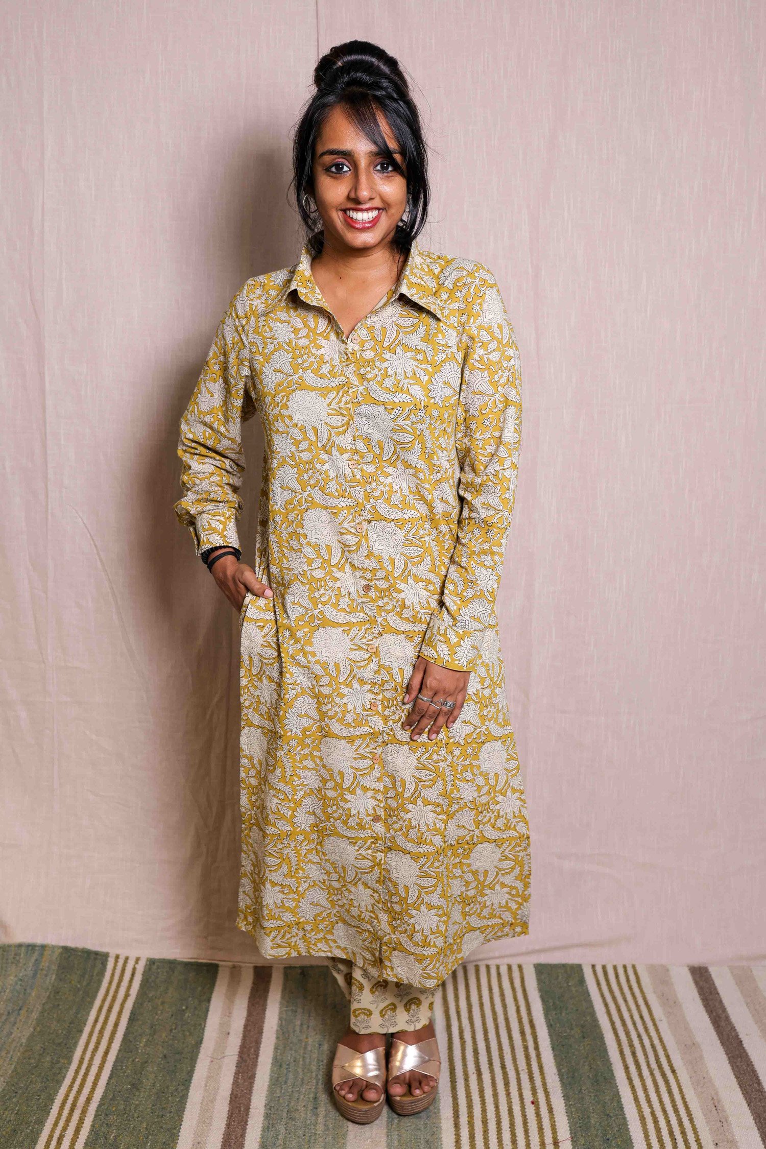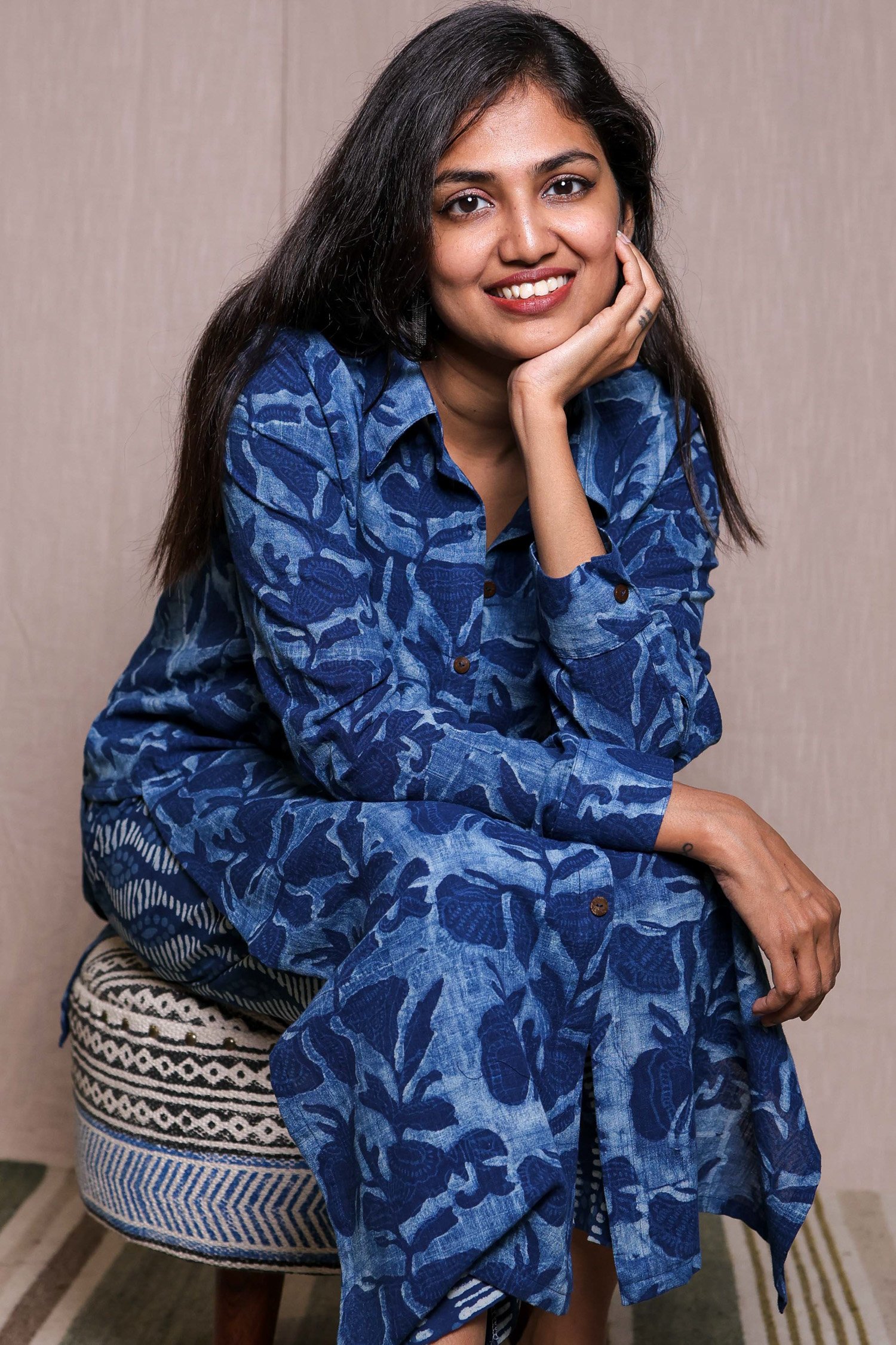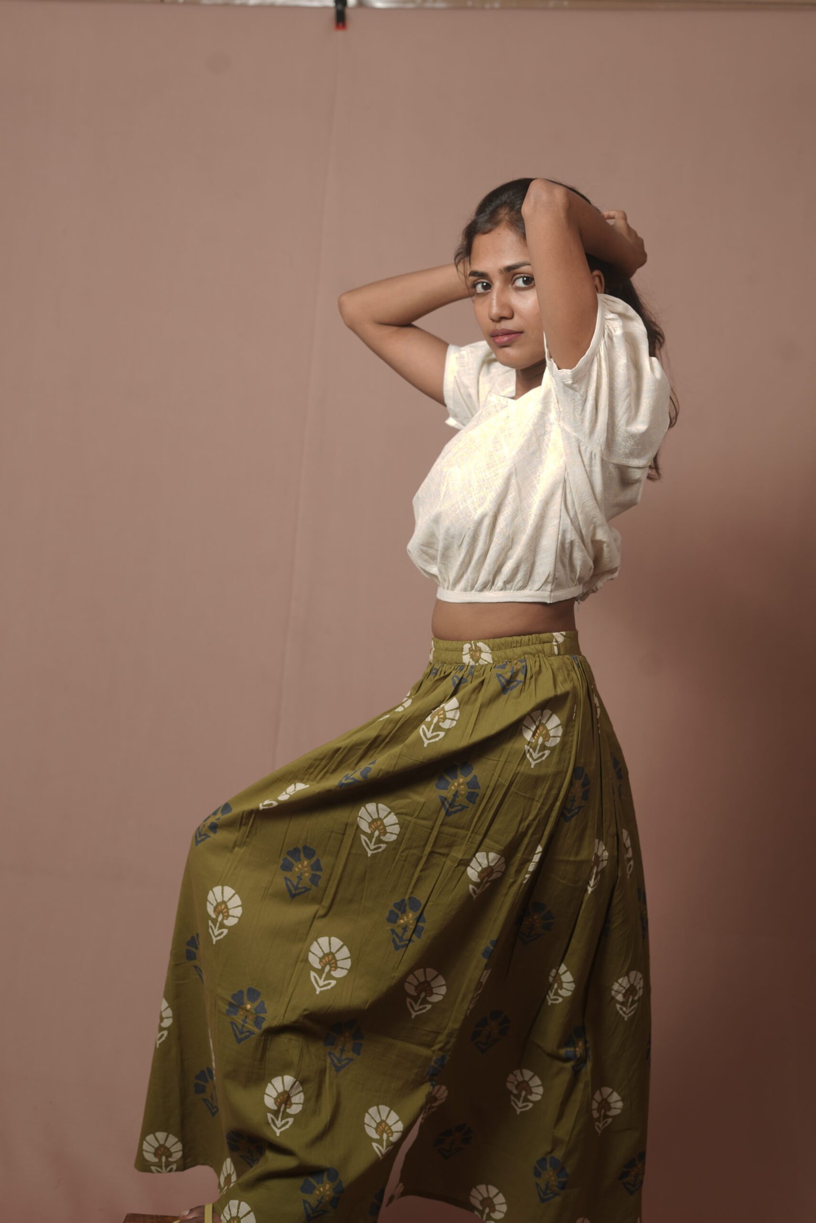 Handcrafted Indigo printed Pant & Solid Silk Top Co-ord