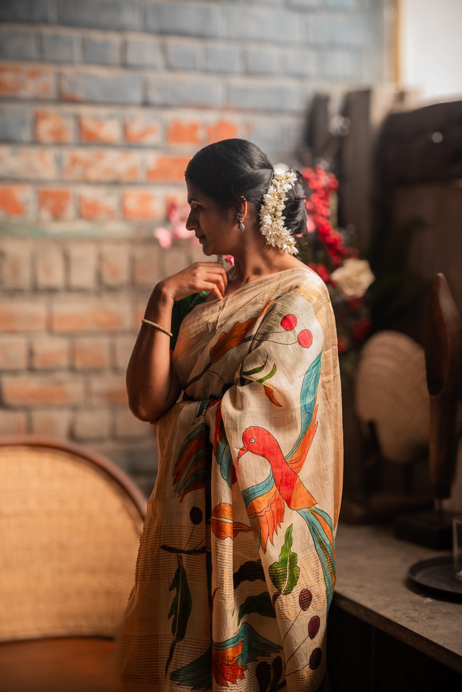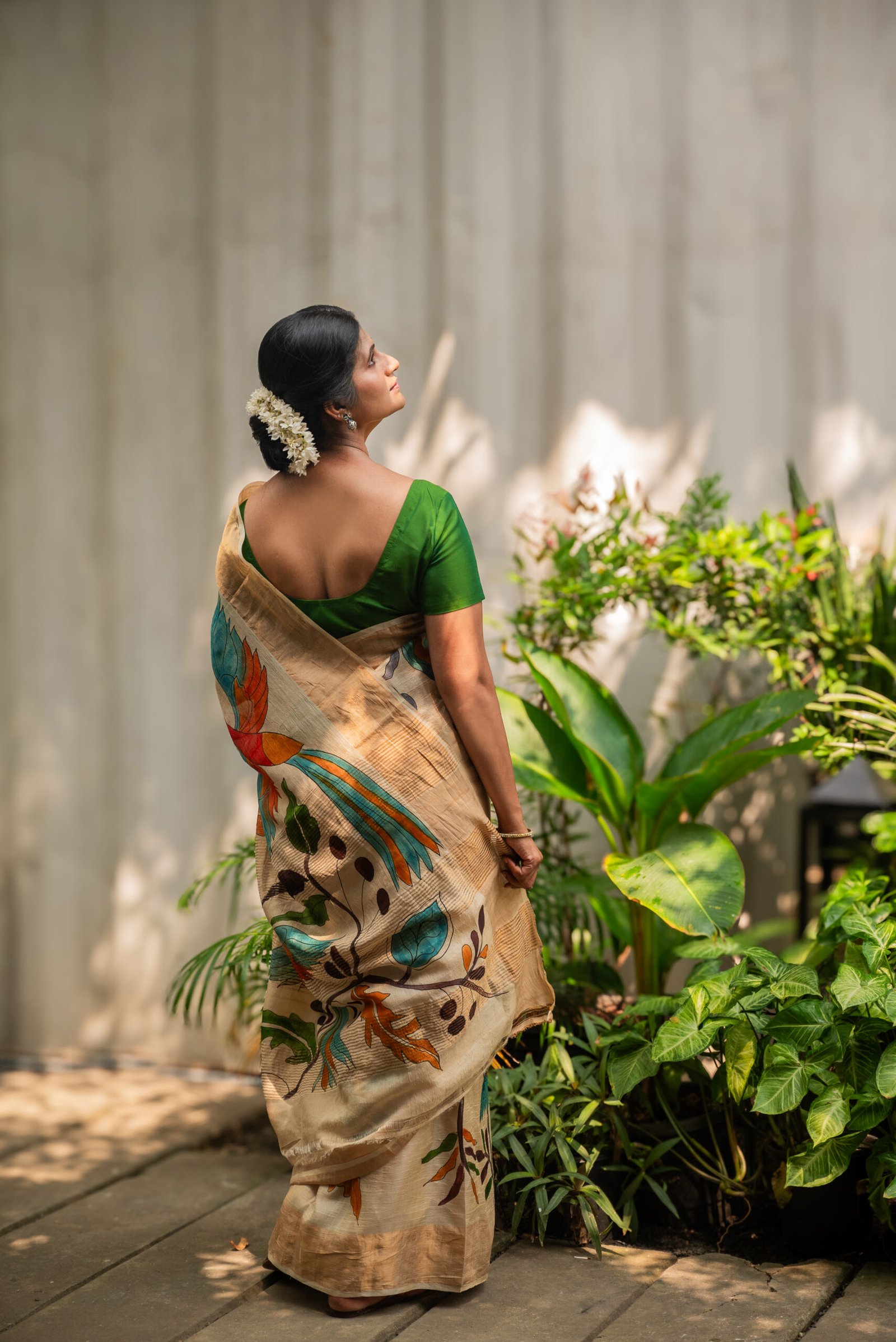 The blouse worn by the model is for styling purposes only and is not paired with this saree